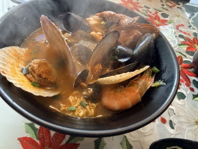 조개, 홍합, 꽃게 반 마리, 새우 한 마리가 들어 있었는데