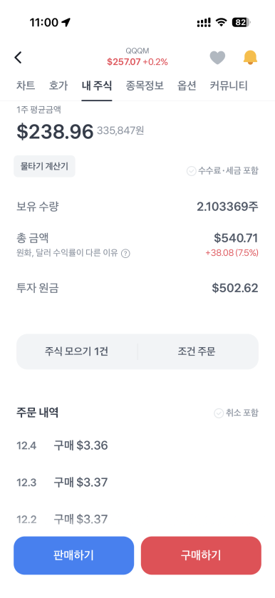 떨어지면 싸게 담는 구간이고, 오르면 알아서 평가금이 올라간다.