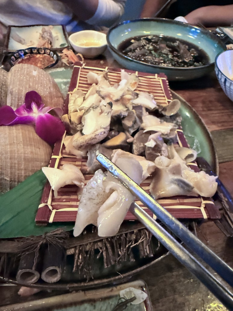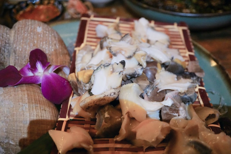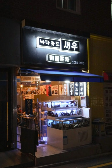 새우·회·조개·해산물 위주.