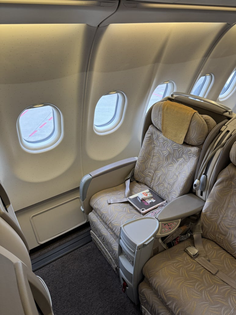 비즈니스 클래스 좌석에 앉아