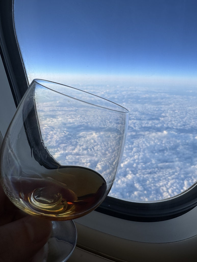 기내식과 함께 위스키 한 잔을 곁들이니,