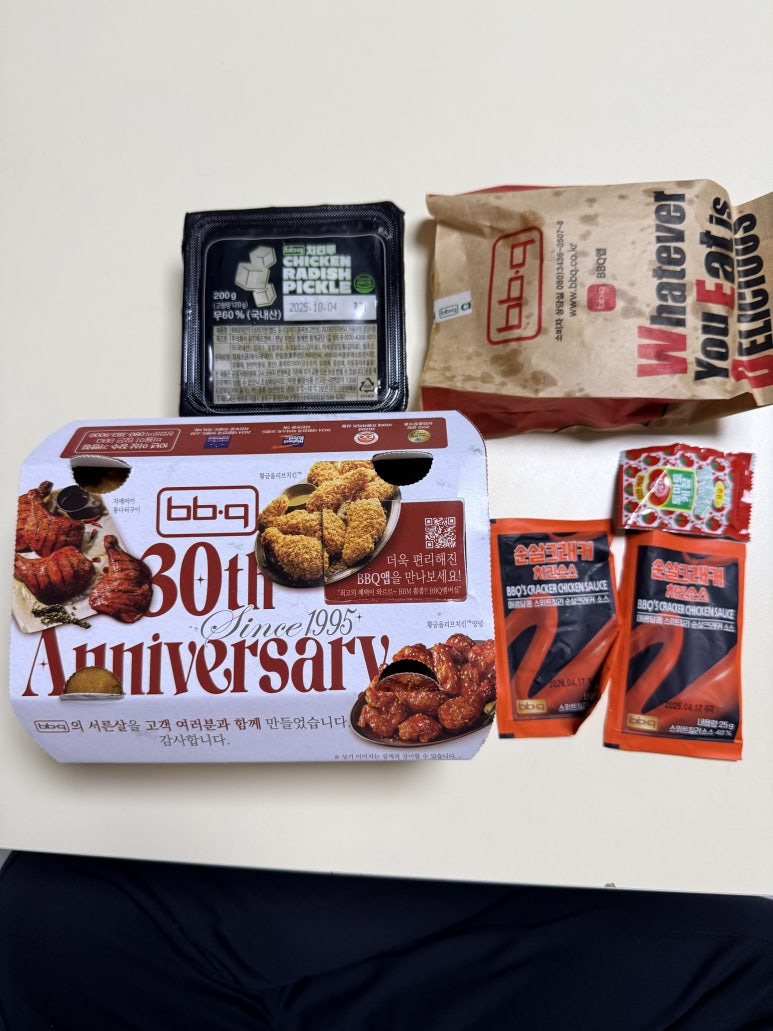 BBQ에서 순살 크래커 치킨과 감자튀김을 포장해