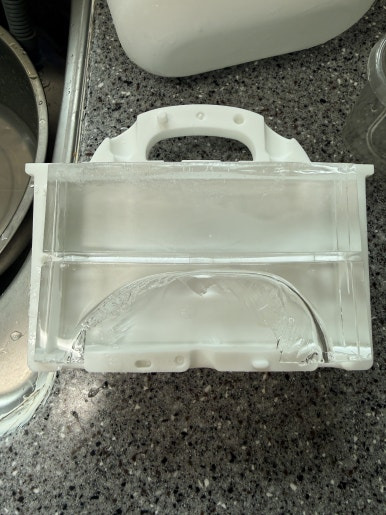30시간 정도 얼렸을 때 하단부 얼음에 구멍이 꽤 크게 생겼습니다.